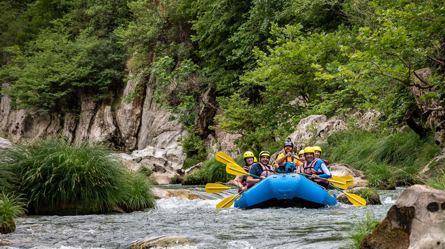 Vom coborî pe Nera, în bărci speciale de rafting, în mijlocul unui peisaj de o rară frumuseţe.